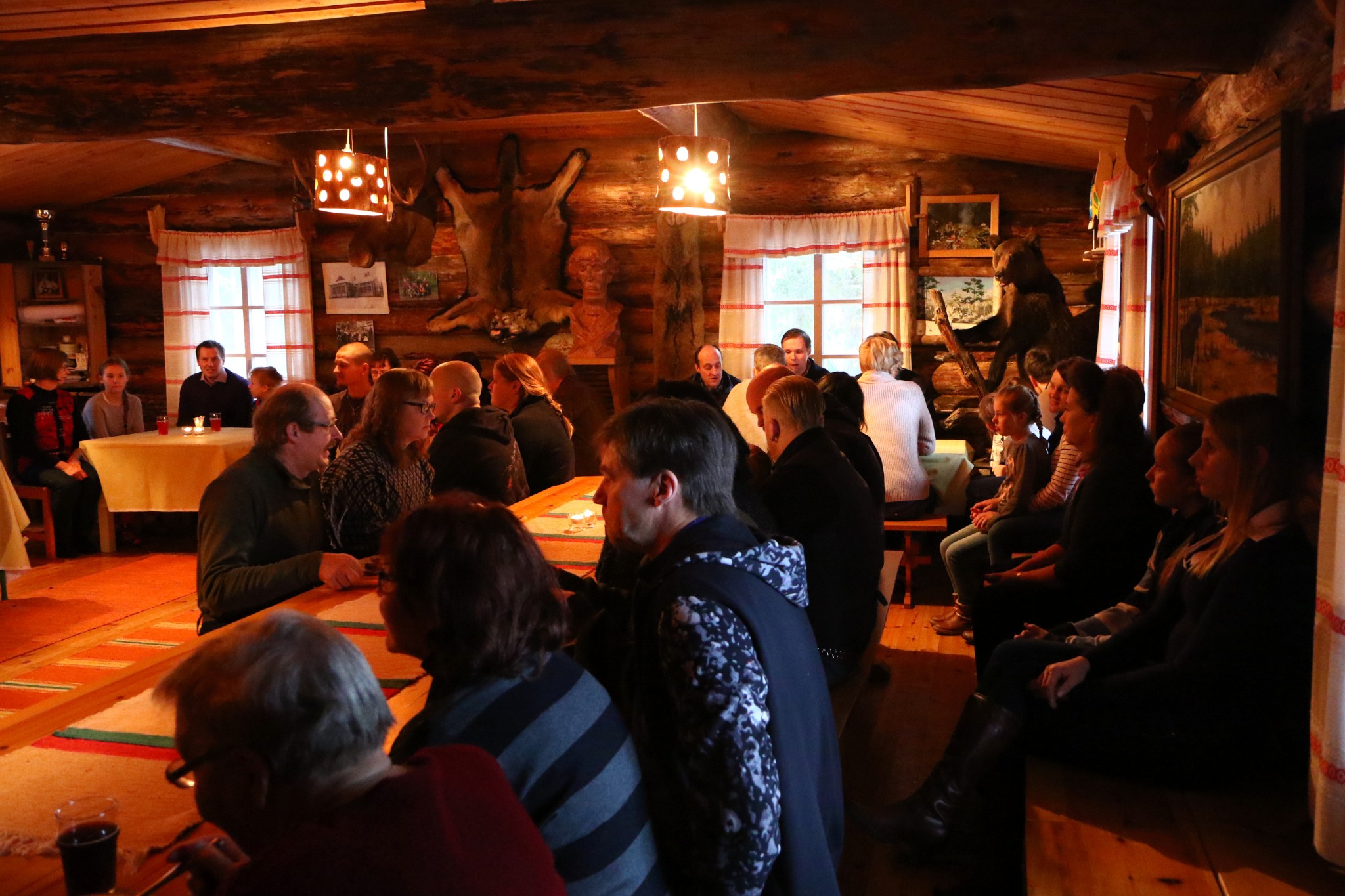 Hirvipeijaiset 2015. Puruskaisen Olli toivotti vieraat tervetulleiksi hirvipaistille.