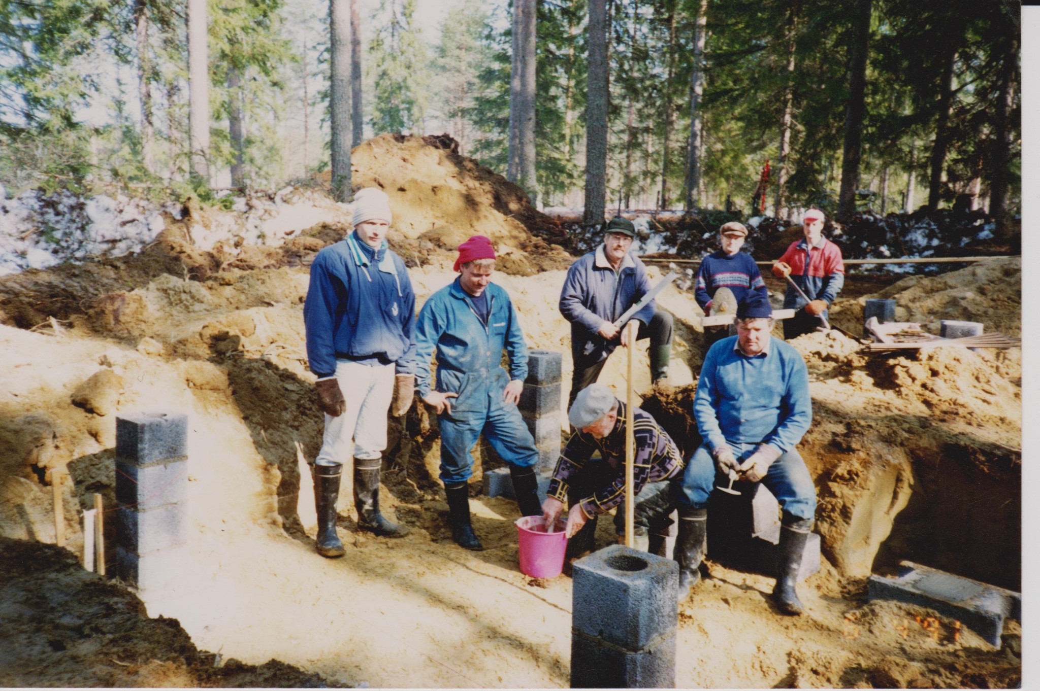 Vuosi 1958. Kuvassa jahtimiehet vasemmalta Herman Miinalainen, Leo Ohvanainen, Teuvo Eronen, Erkki Könönen, Matti Haaranen ja Toimi Huhtilainen.